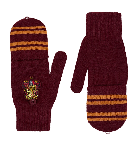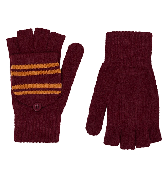 Keep warm and cosy on trips between Hogwarts and Hogsmeade with these Gryffindor Knitted Mitten Capped Gloves. The Gryffindor gloves come in burgundy and have yellow stripes across the centre, the traditional house colours of Gryffindor.