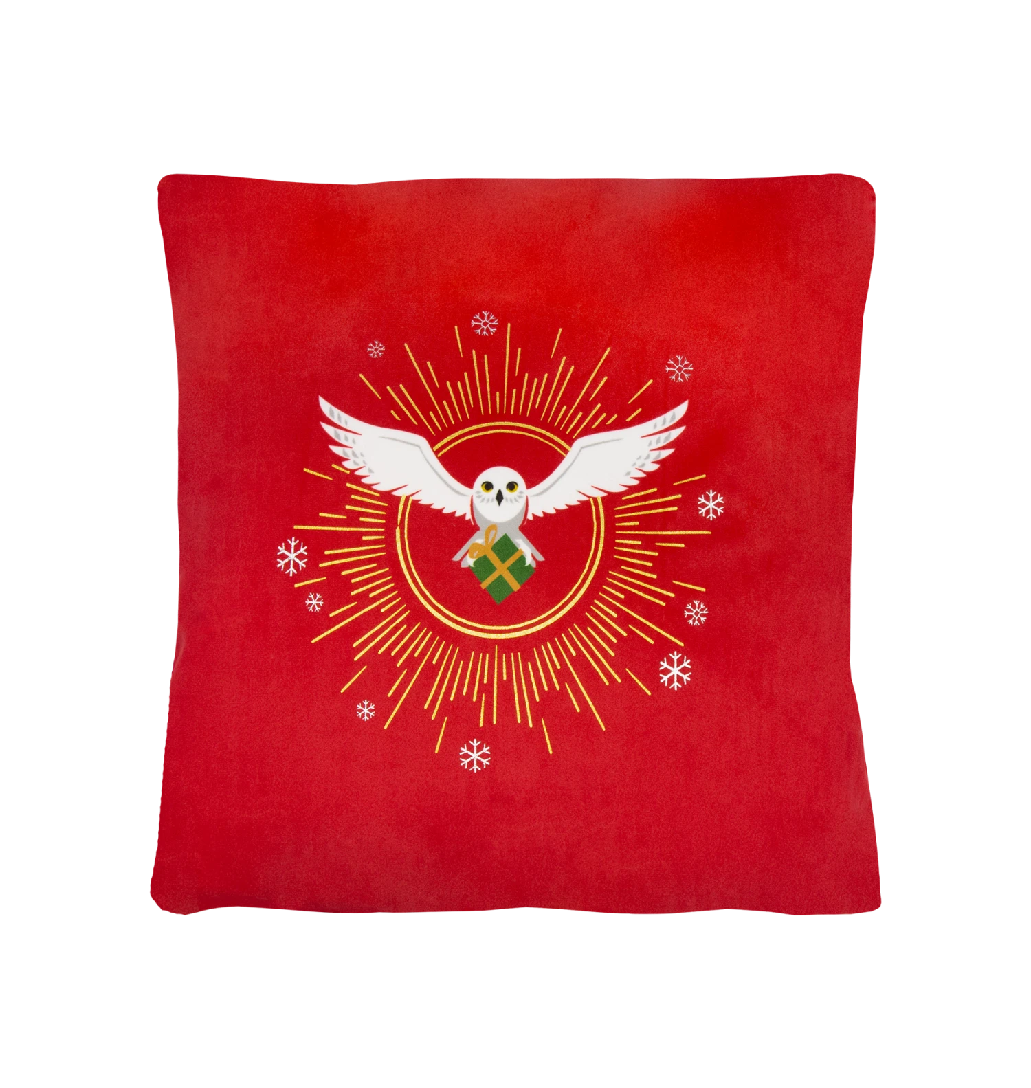 Luxurious and plush to the touch, this Harry Potter cushion cover invites you to indulge in cosy, festive comforts. Fashioned from 100% soft pile polyester velour, its front features a heartwarming scene from the Philosopher’s Stone where Harry sits next to the Christmas tree in the Great Hall of Hogwarts Castle. The bright red contrast back cover boasts a shimmering print of Hedwig carrying a gift, surrounded by a golden ornamental burst with snowflakes. Exquisite satin piping along the edge adds an additional elegant touch.