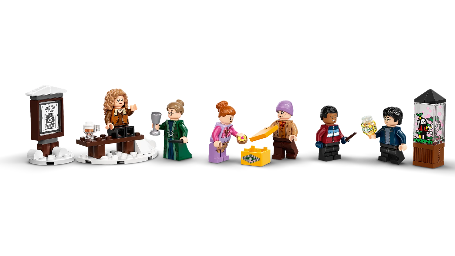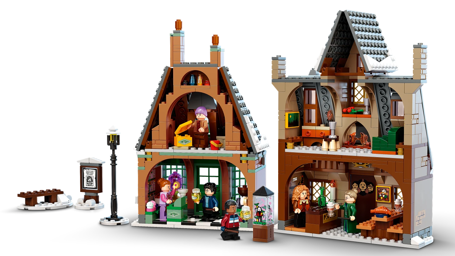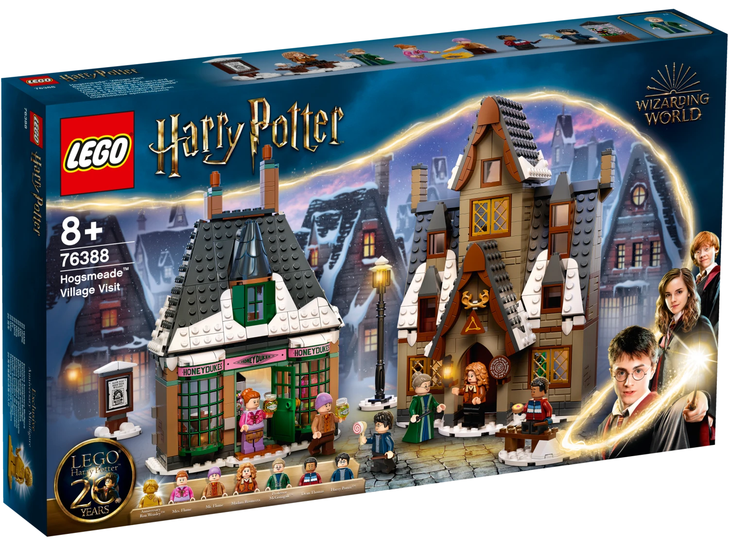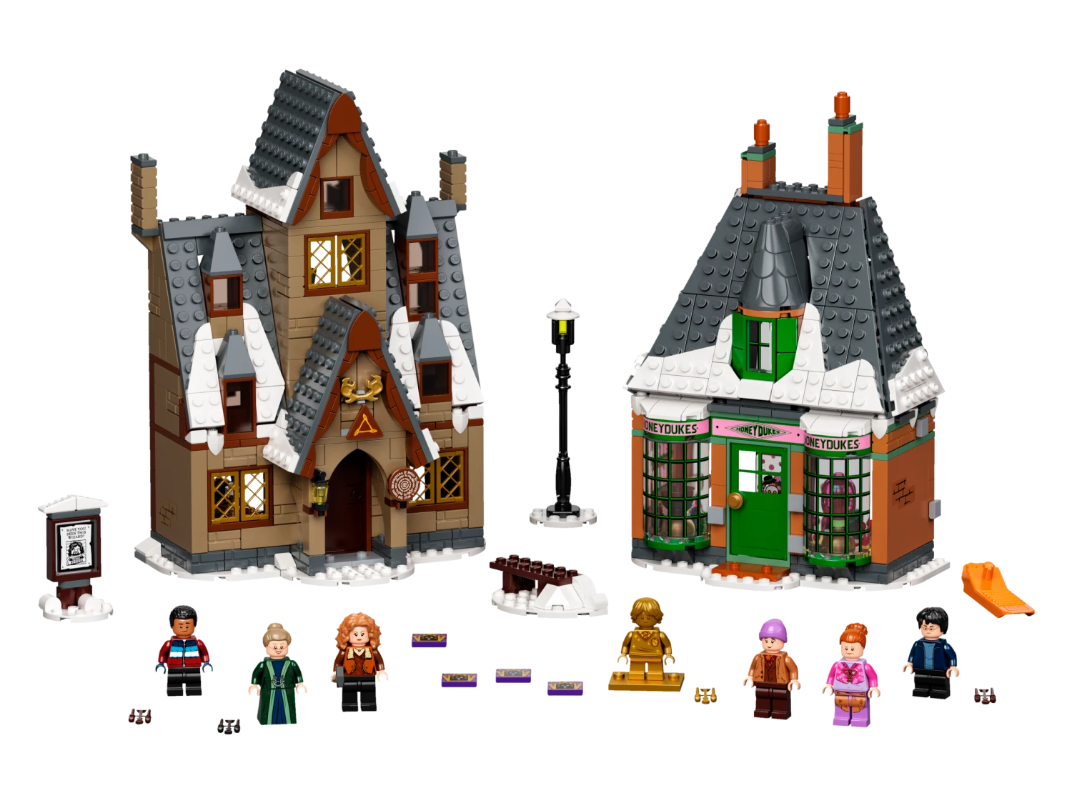 Take a trip to Hogsmeade with Harry Potter and Dean Thomas. Buy tongue-tingling acid pops from Mrs. Flume at Honeydukes, then go upstairs to help Mr. Flume make candy. Feeling thirsty? Try a Butterbeer at The Three Broomsticks, where Professor McGonagall is chatting to Madam Rosmerta by the fire. Includes an exclusive, golden, anniversary Ron Weasley minifigure and 4 random wizard card tiles!