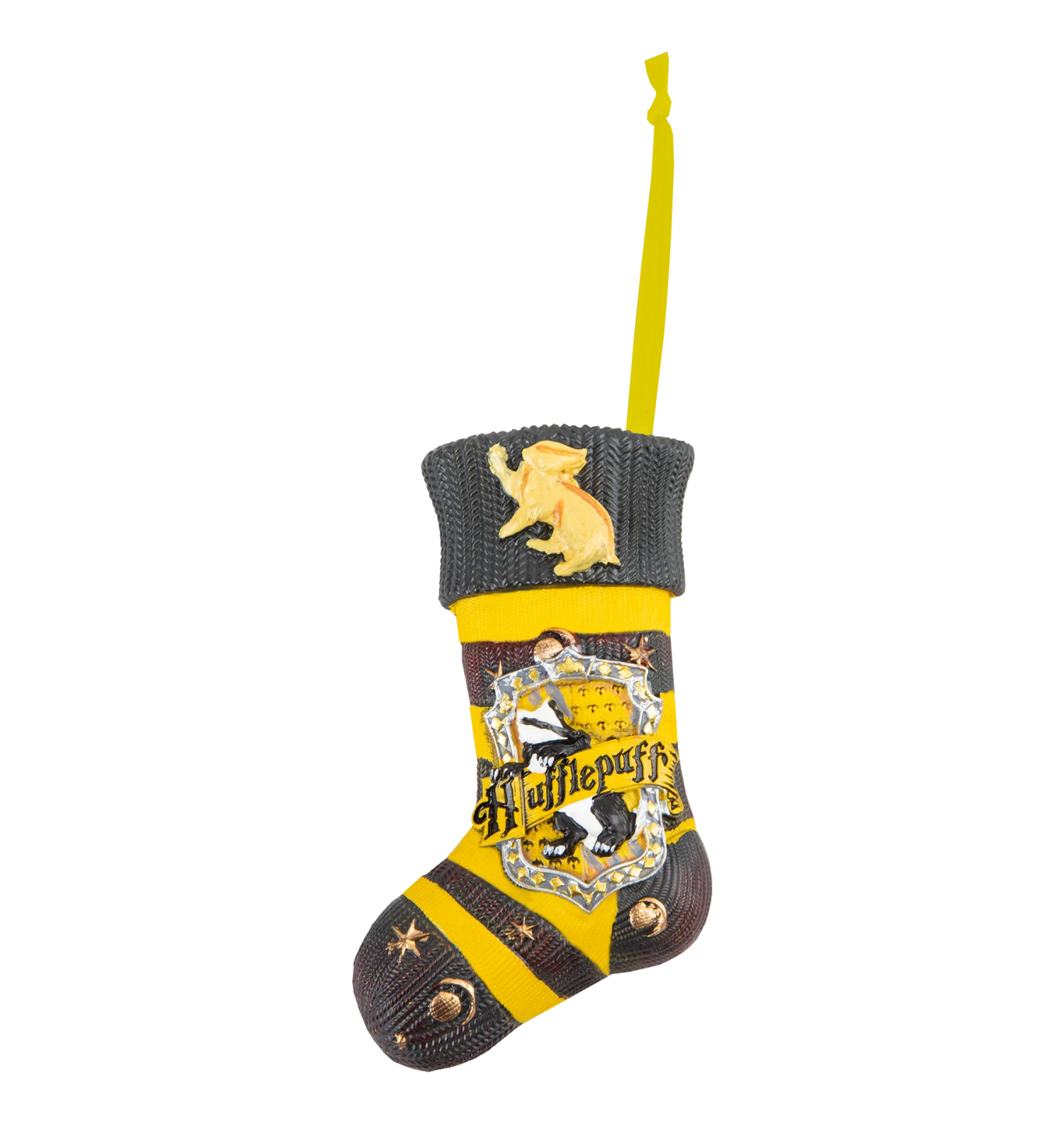 Bring some Harry Potter magic into your home this Christmas and decorate your tree with this Hufflepuff Stocking Hanging Ornament. Themed with the traditional colours of Hufflepuff in yellow and black, the ornament features the symbolic Hufflepuff crest centred in the ornament.
