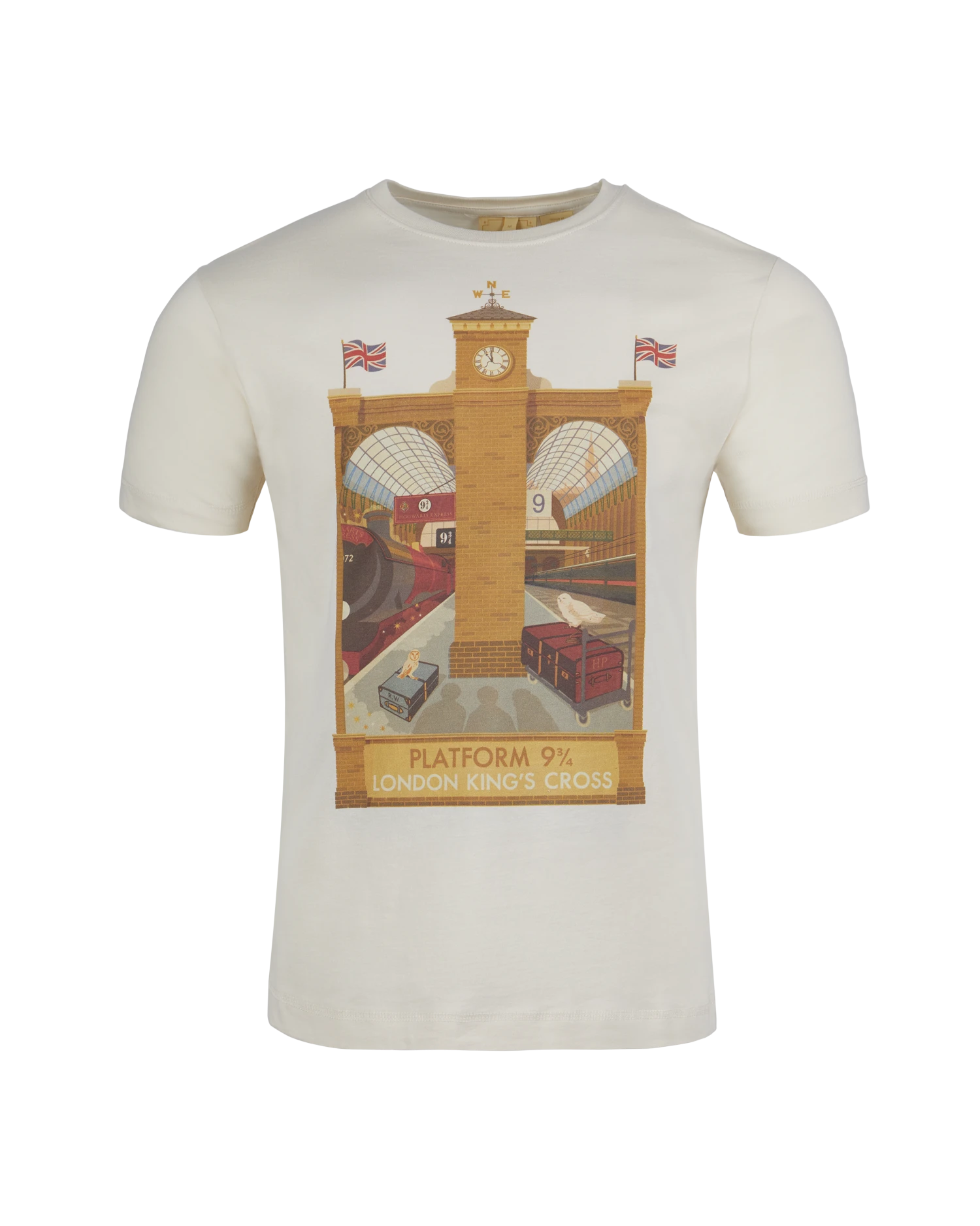 This unique Platform 9 3/4 T-Shirt features an exclusive print designed by the renowned graphic design duo MinaLima. The captivating print showcases the iconic Platform 9 3/4, the gateway to the Hogwarts Express and countless enchanting adventures.