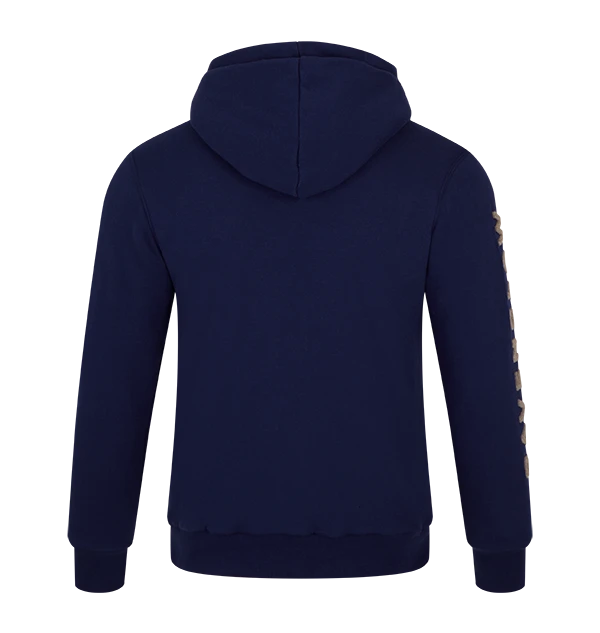 The house name is screen-printed along the sleeve in a light grey font. The interior of the hoodie is lined with thick winter white, soft Sherpa fleece, making it the perfect addition to your wardrobe in colder months. The hoodie also includes a tunnel pocket in front, and two cream-coloured strings which can be adjusted for a suitable and comfortable fit.