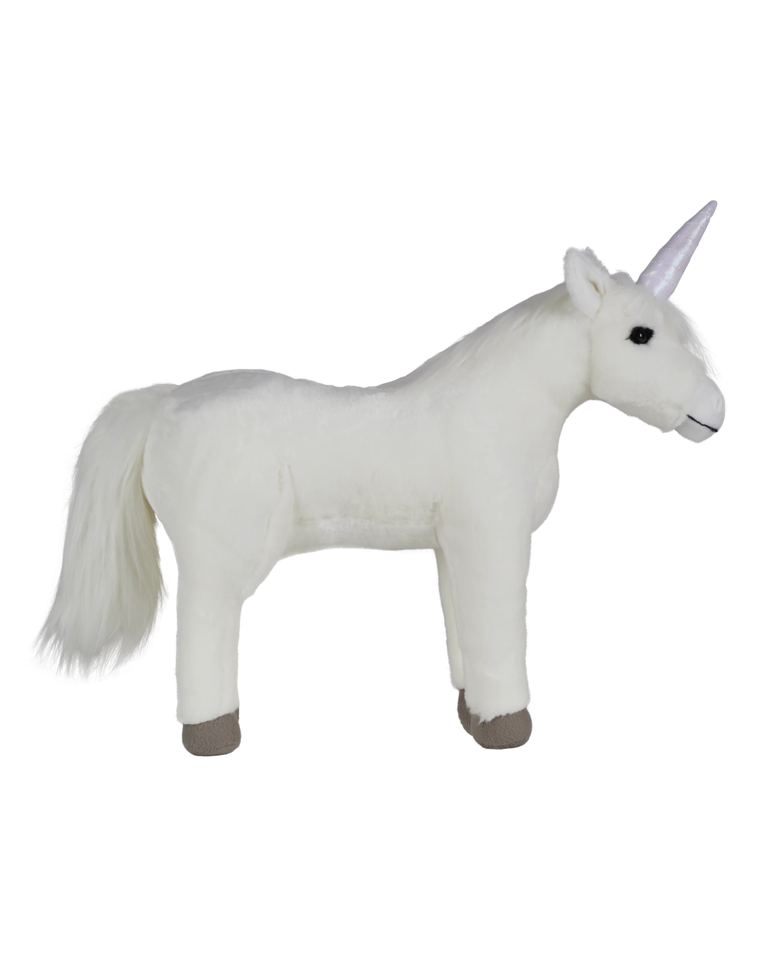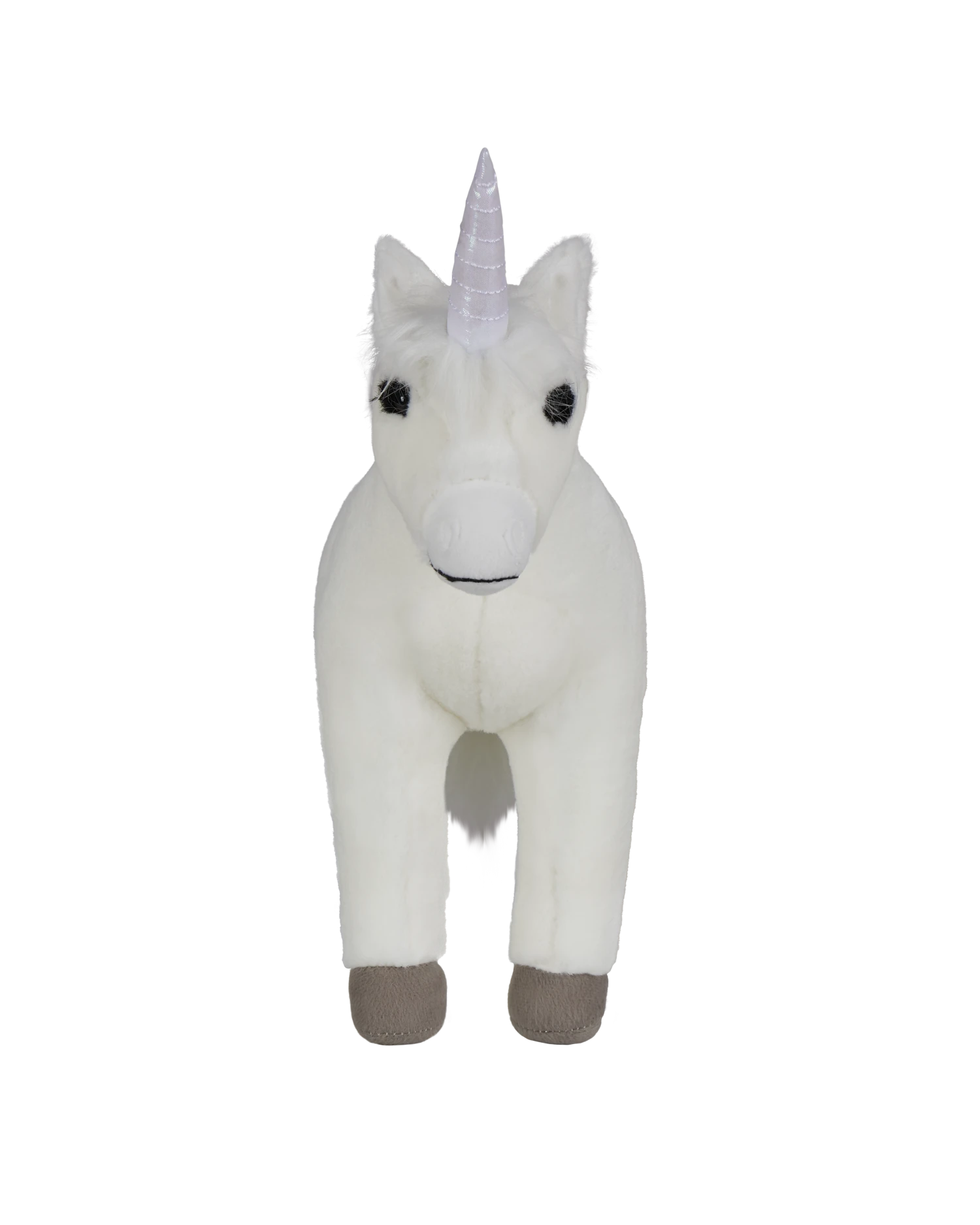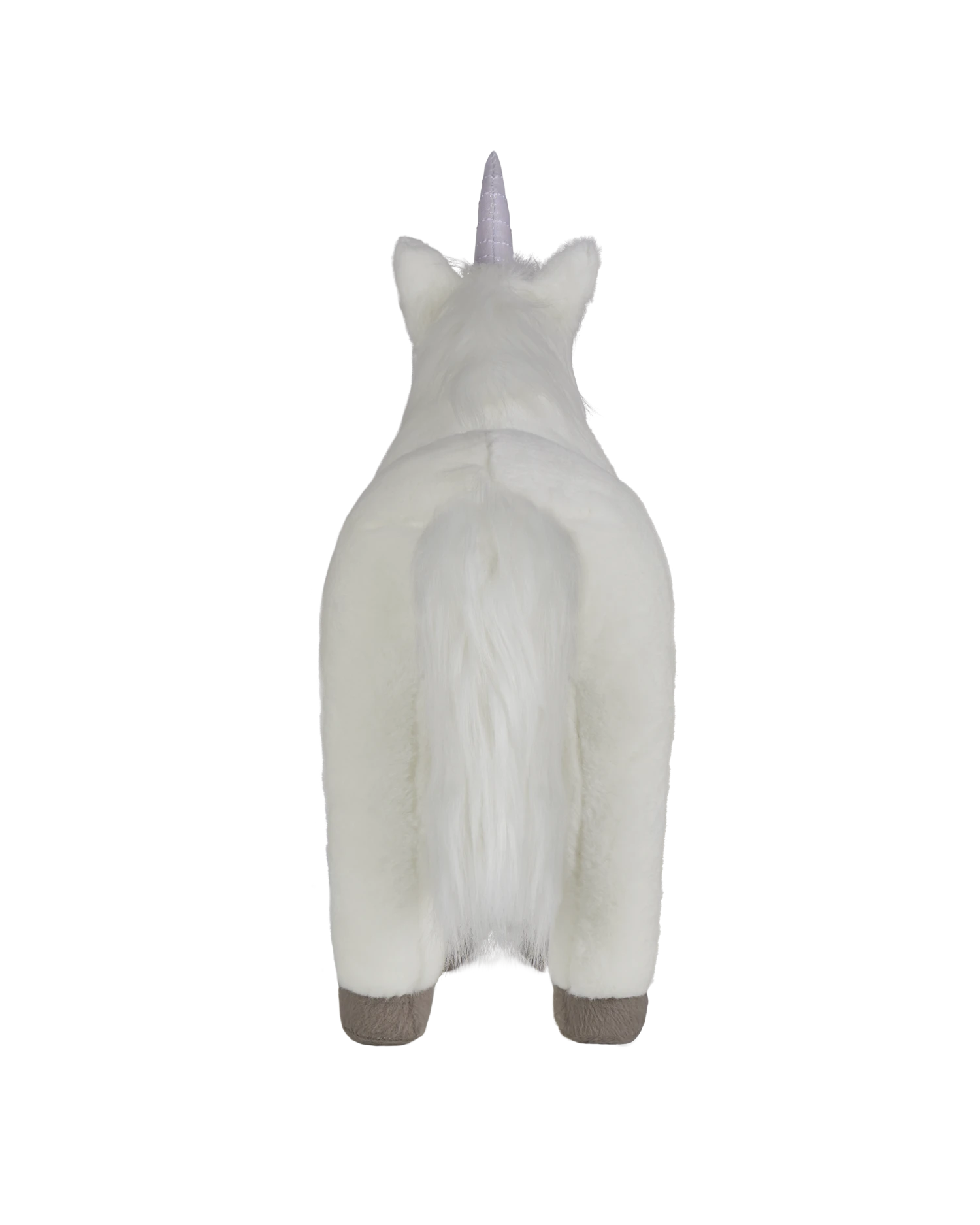 The soft and furry plush has been designed with white faux fur and has soft light-grey hooves. The unicorn is complete with a metallic silver horn and black acrylic eyes. Add this mystic unicorn soft toy to your collectibles or gift loved ones with this magical creature.