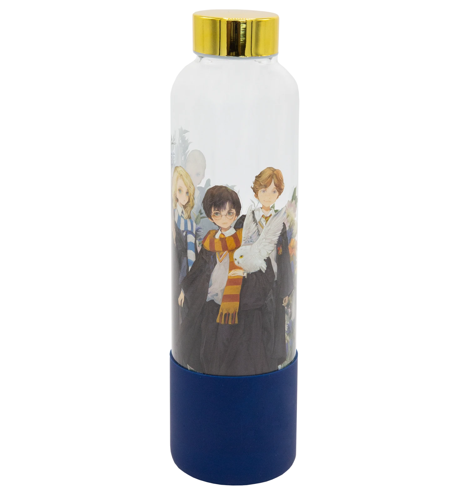 Sip from this beautiful Harry Potter Glass Water Bottle and let yourself be whisked away to a world of magic and wonder with every drop. Adorned with a collage of breathtaking Yume artwork featuring beloved Hogwarts students, Draco, Hermione, Luna, Harry, and Ron, this bottle is a must-have for any collector.