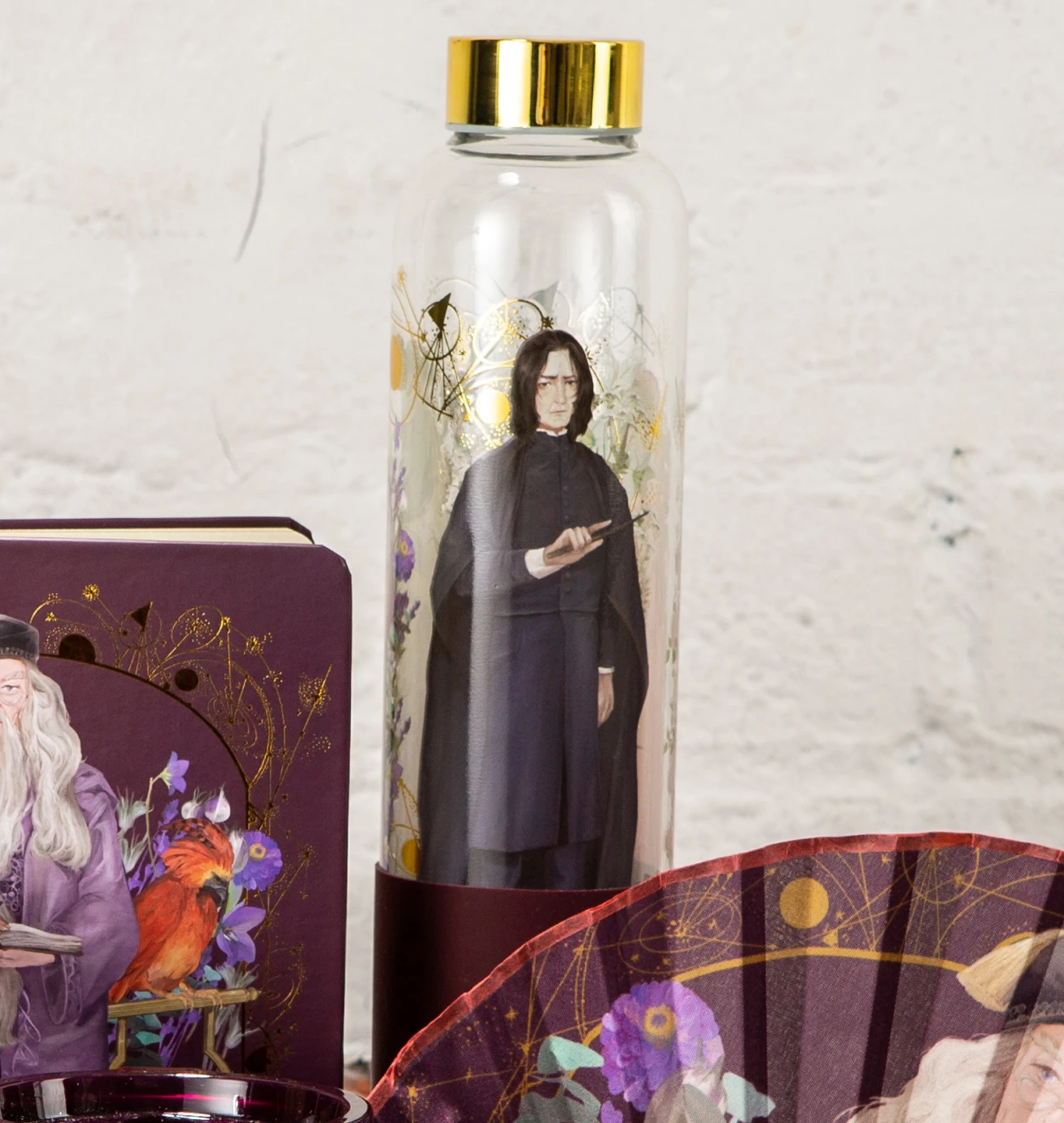Sip from this beautiful Harry Potter Glass Water Bottle and let yourself be whisked away to a world of magic and wonder with every drop. Adorned with a collage of breathtaking Yume artwork featuring Hogwarts professors Albus Dumbledore, Severus Snape and Dolores Umbridge, this decorative bottle is a must-have for any collector.
